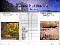 The Navajoland Puzzles CD features 75 puzzles featuring 25 different photographs. Each photograph is offered in 3 different puzzle sizes: 45 pieces, 100 pieces and 200 pieces.