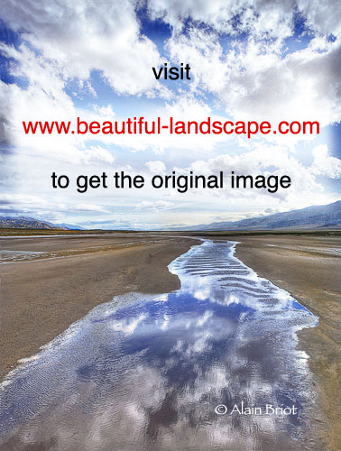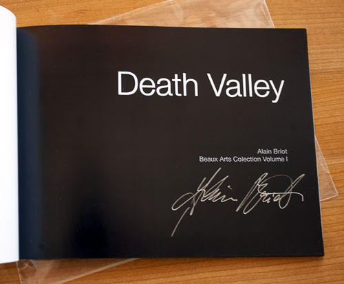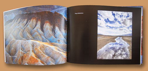 The photographs in this Booklet were created during two photography visits to Death Valley, the first one a couple of years ago, and the second one this spring, in March 2006. The majority of the images (14 out of 17) were created this year. If you are a photographer, this is an interesting project because it proves that one can complete such a project in one or two visits. The booklet was created on my Macintosh G5, and took only a few days to assemble and send to printing. This is another interesting aspect of the project: I assumed a book project was a daunting task. In fact, it can be done quite simply and easily, if one follows the approach I did for this book. The images are either printed half-page, full page, or panoramics across two pages. Here is one spread from the booklet: