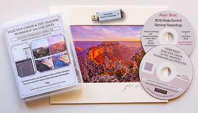 Yes. If you do not have a DVD reader in your computer, we can ship the Selective Color and HSL Mastery Workshop the 2018 Moab Fine Art Summit Presentations on a USB Flash Card instead of a DVD. If you want to take advantage of this option, simply place your order using the link above then email me at alain@beautiful-landscape.com to let me know that you want your order delivered on a USB Flash Card rather than on CD and DVD. The cost is the same.