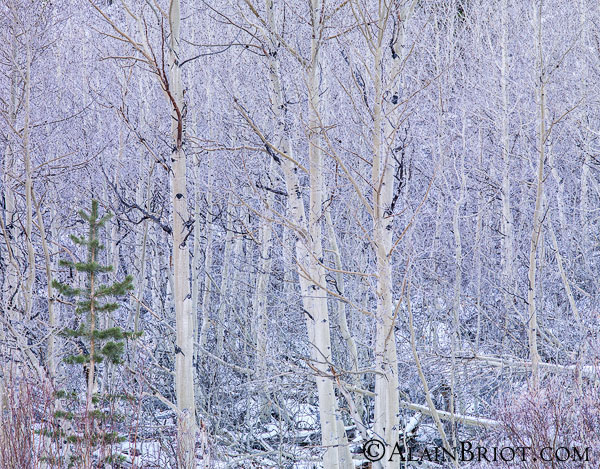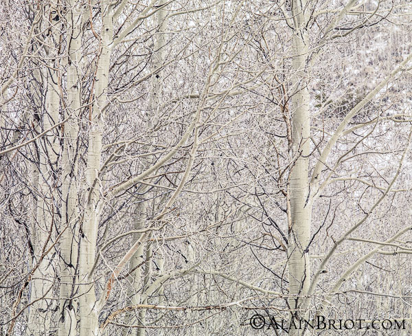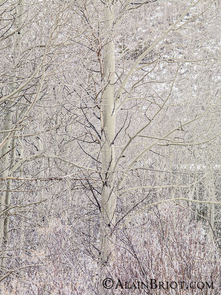For this second visit I was there later in the year and all the leaves were gone. At first I was disappointed because I was looking forward to creating more photographs similar to the ones I created on my first visit. I expected a repeat of the conditions I witnessed on my first visit but instead I found a totally different situation. All the leaves were gone, there was no direct light, and it was snowing lightly. The light was dim, the ambiance was wintery and the temperature quite cold. IN fact by the end of the shoot my feet were numb from standing on snow for an hour or more.