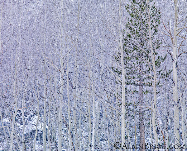 I considered not taking a single photograph of the trees. While I found them extremely inspiring on my previous visit, this time they came across as uninteresting. While on my previous visit I used a short telephoto lens to narrow the composition to the trees alone, this time I put a wide angle lens on my camera and tried to photograph the entire scene, including the sky and the mountain.
