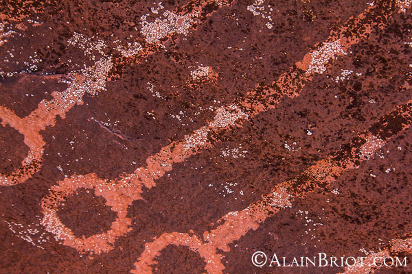 To achieve this goal I decided to photograph the rock art 'sideways,' meaning by tilting the camera instead of keeping it horizontal. The fact that the image is tilted is not necessarily visible in the photographs because of the lack of context and the absence of a visual horizon. In fact these images may appear to have been photographed 'level' even though they were not.