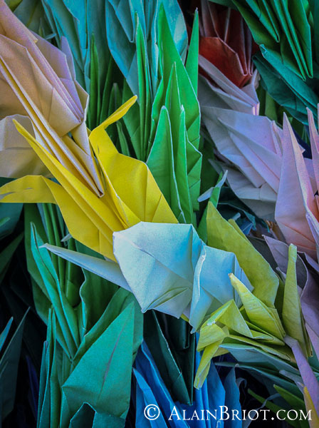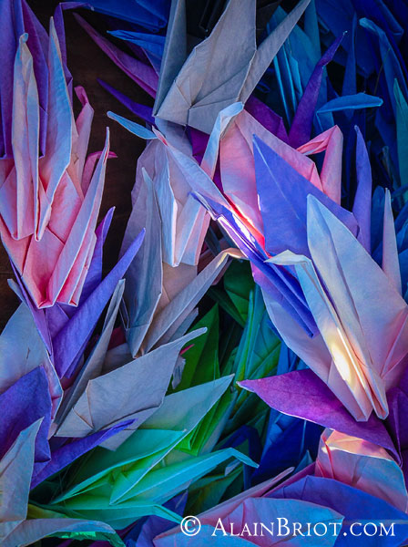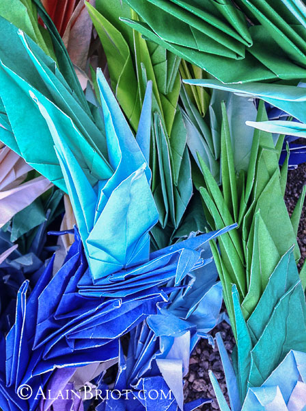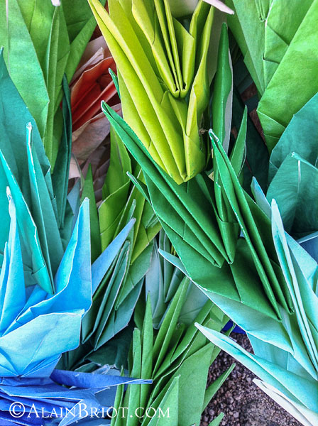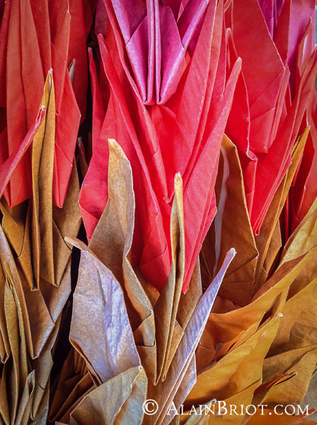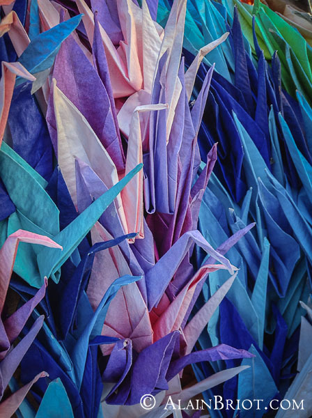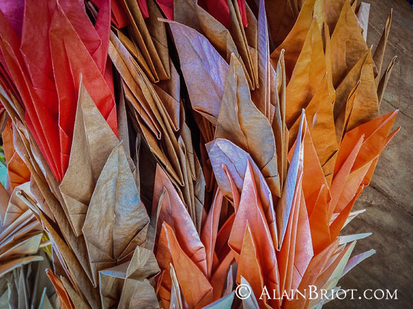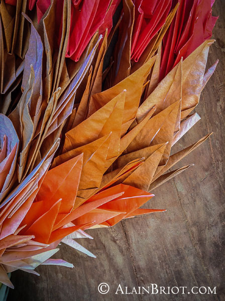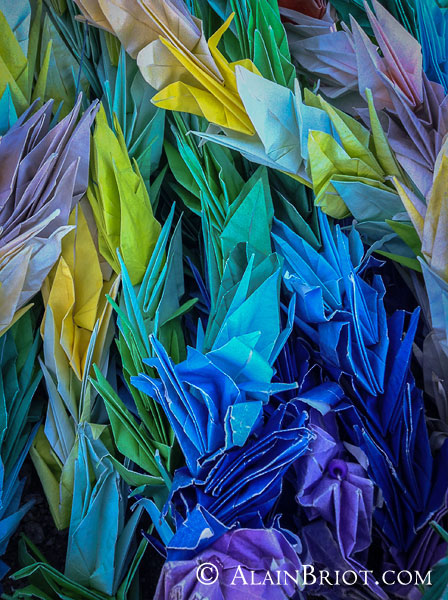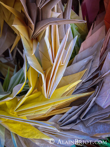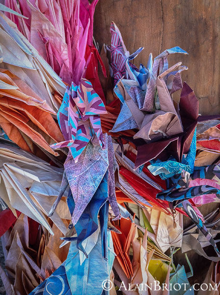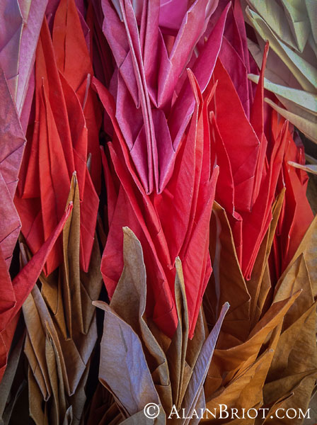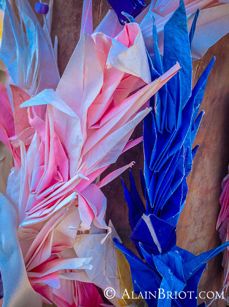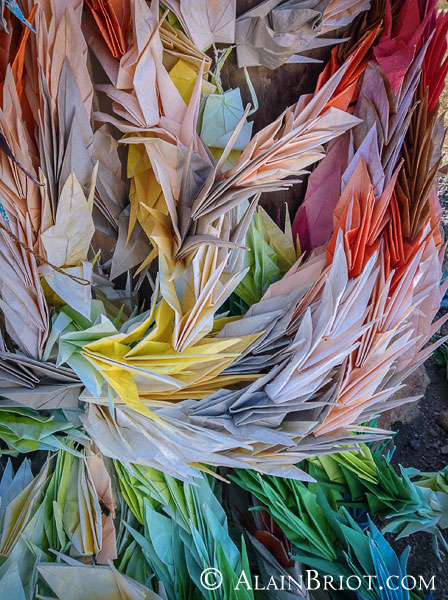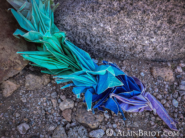 During this visit I assigned a mini project to myself: to photograph details of the Origami items left by visitors at the Manzanar Cemetery Monument.