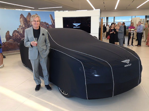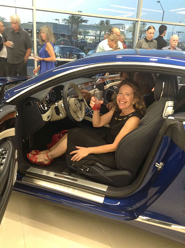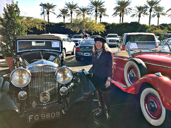 Natalie next to a 1934 Bentley 3.5 liter Drophead Coupe. Notice the modern Bentley Continental GT in the background.