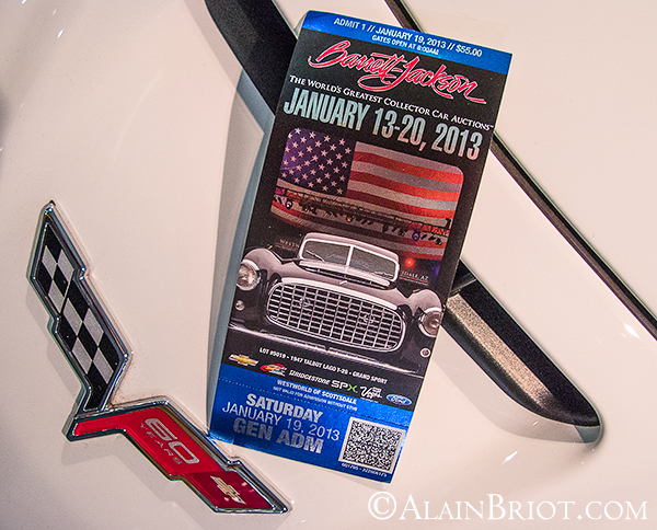 My Barrett-Jackson entry ticket on a 60th Anniversary Corvette front hood.