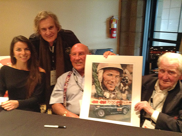 From left to right: Masha (the artist), myself, Sir Stirling Moss, Norman Dewis.