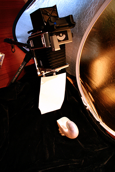 Metering the shell I came up with a 60 second exposure onto Polaroid Type 55 Positive/Negative film (which I rate at 25 ISO to obtain a well-exposed negative).