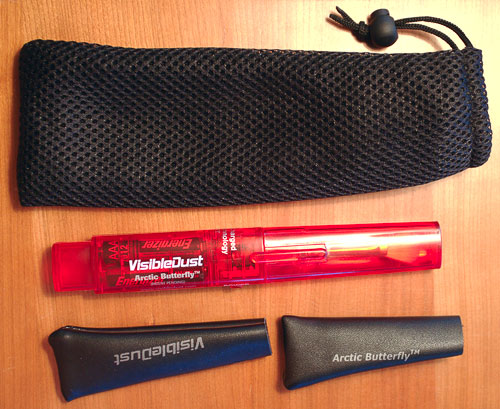 The Arctic Butterfly is made by Visible Dust. Basically, it is an anti static brush mounted on a small electric motor powered by two AAA batteries. The purpose of the motor is to spin the brush at high speed to load the bristles with static electricity. Once electrostatically charged, the brush is swept over the sensor, thereby collecting dust particles which literally "jump" onto the brush.