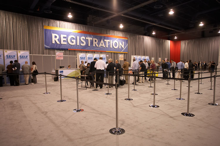 to the "Self-Registration" booths where you type your information, swipe your card and then leave to pick up your registration receipt
