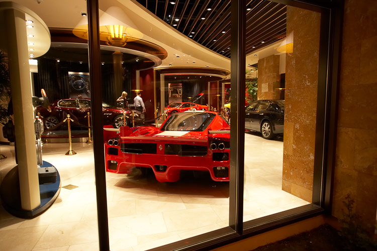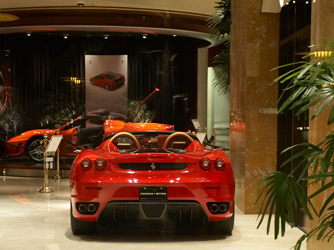 And here are two photographs of the Ferrari, Maserati and other exotic cars display in the Wynn's casino.