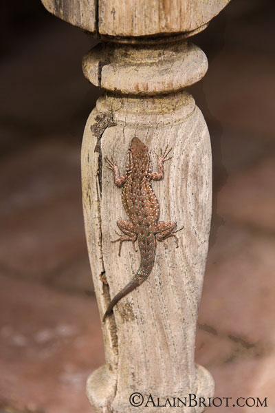 Lizard on bench leg