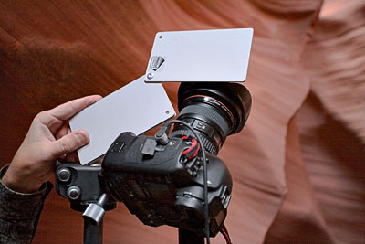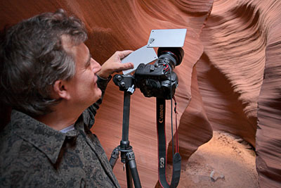 The great thing with using WhiBal as a lens shade is that it is made of non-reflective materials. So, you are guaranteed that no light will bounce from WhiBal into your lens. This is an important consideration in a place like Antelope Canyon where nearly all the ambient light is bounced light.