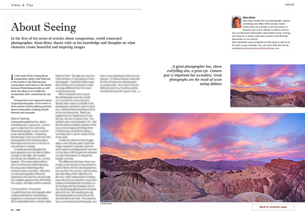 I also have a new essay in the March issue of Landscape Photography Magazine. You can see a preview of my essay here and see the subscription based magazine here.