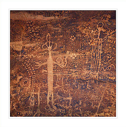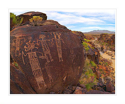 Rock Art consists of images either painted or pecked onto rock surfaces. These images have been created by Native Americans from prehistoric to historic times. Although dating rock art is difficult it is usually accepted that some images found in the Southwest may have been created several thousand years ago. Painted images are called pictographs while pecked or carved images are called petroglyphs.